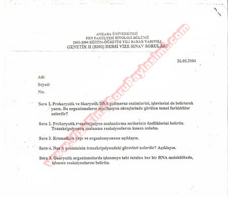 Genetik-2 Vize Soruları-2004 8-01-2015, 15:26