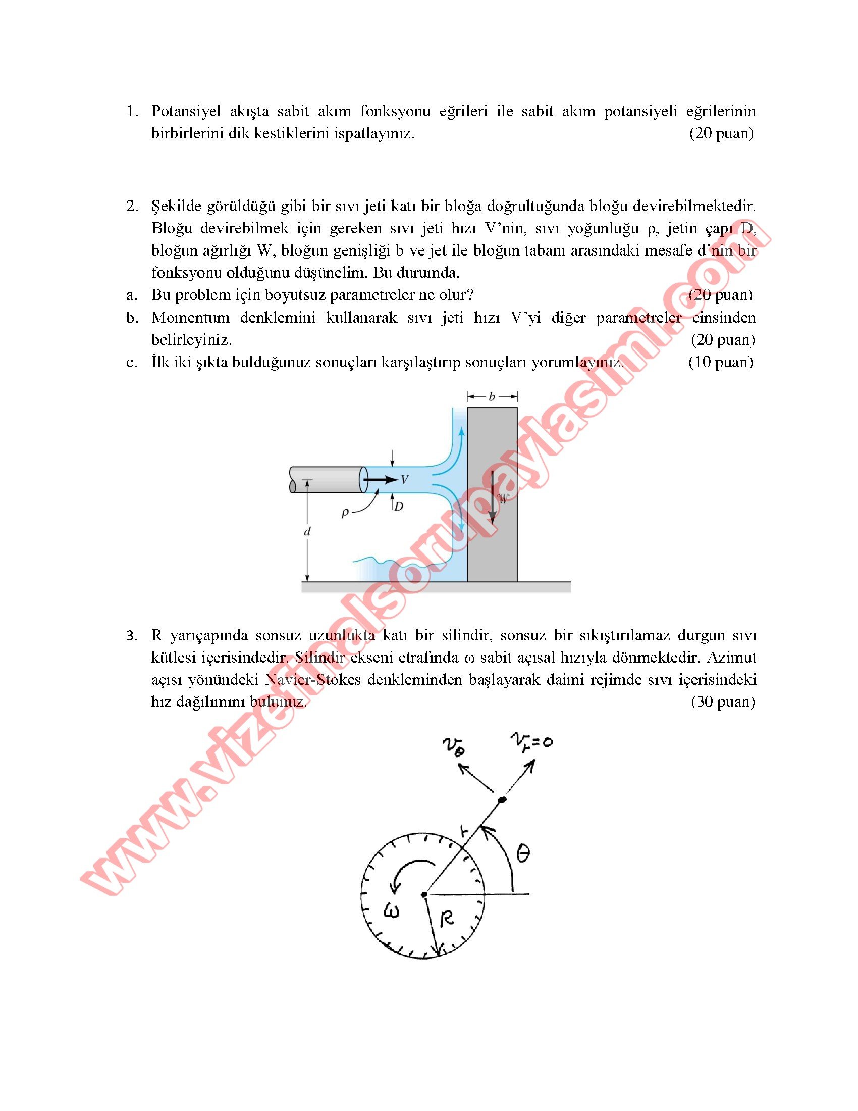 Vize ve Final Soruları / İstanbul Teknik Üniversitesi / Akışkanlar Mekaniği