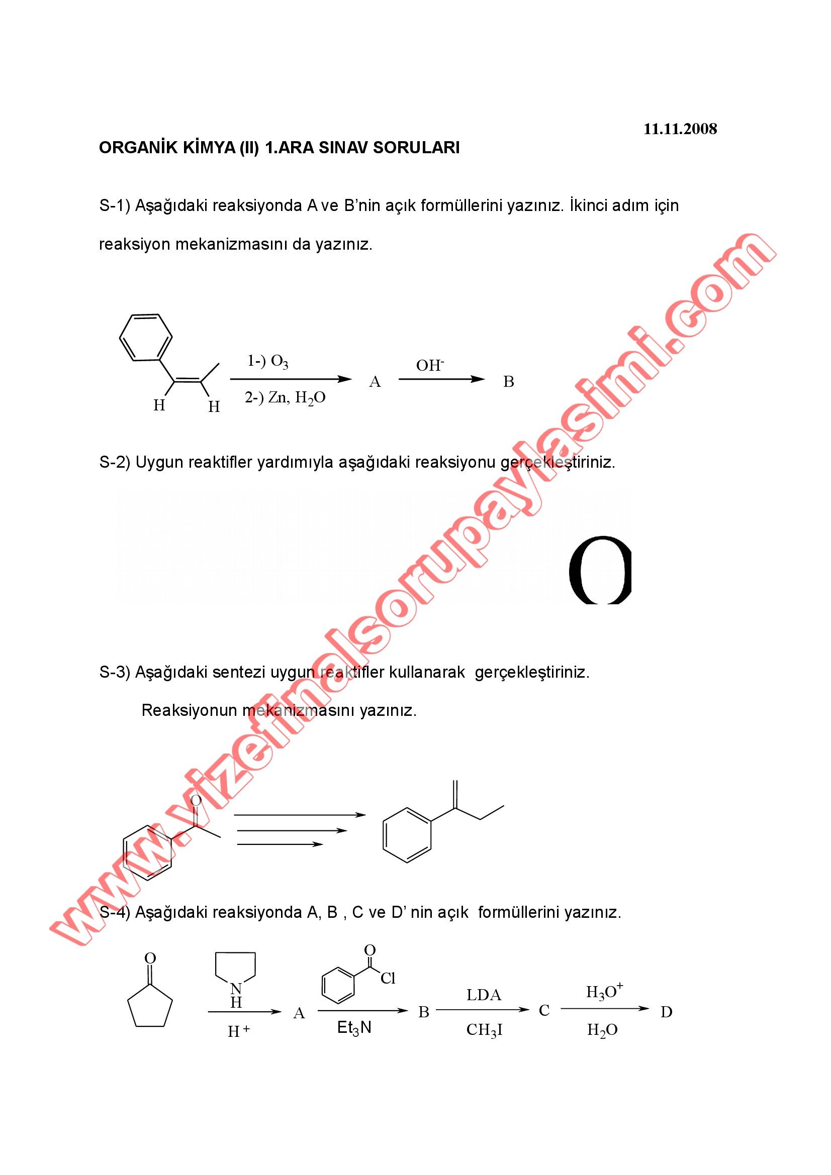 Organik Kimya-2 Vize Soruları - 11.11.2008