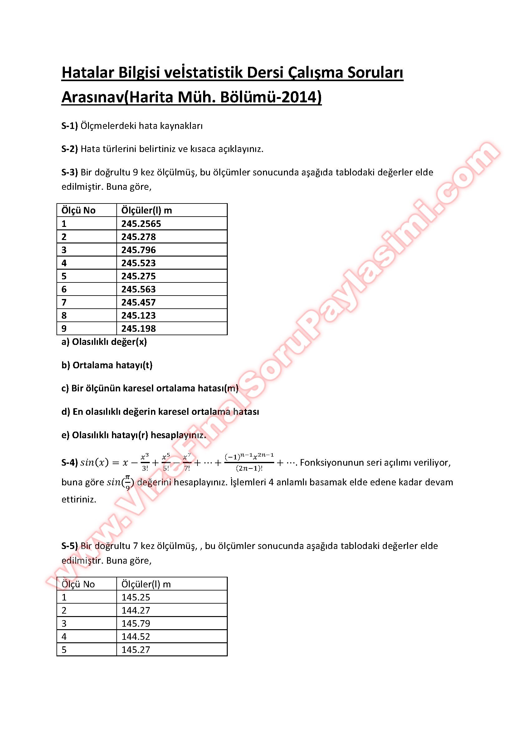 Matematik -2 Ara Sınav Çalışma Soruları 29-03-2015, 04:38