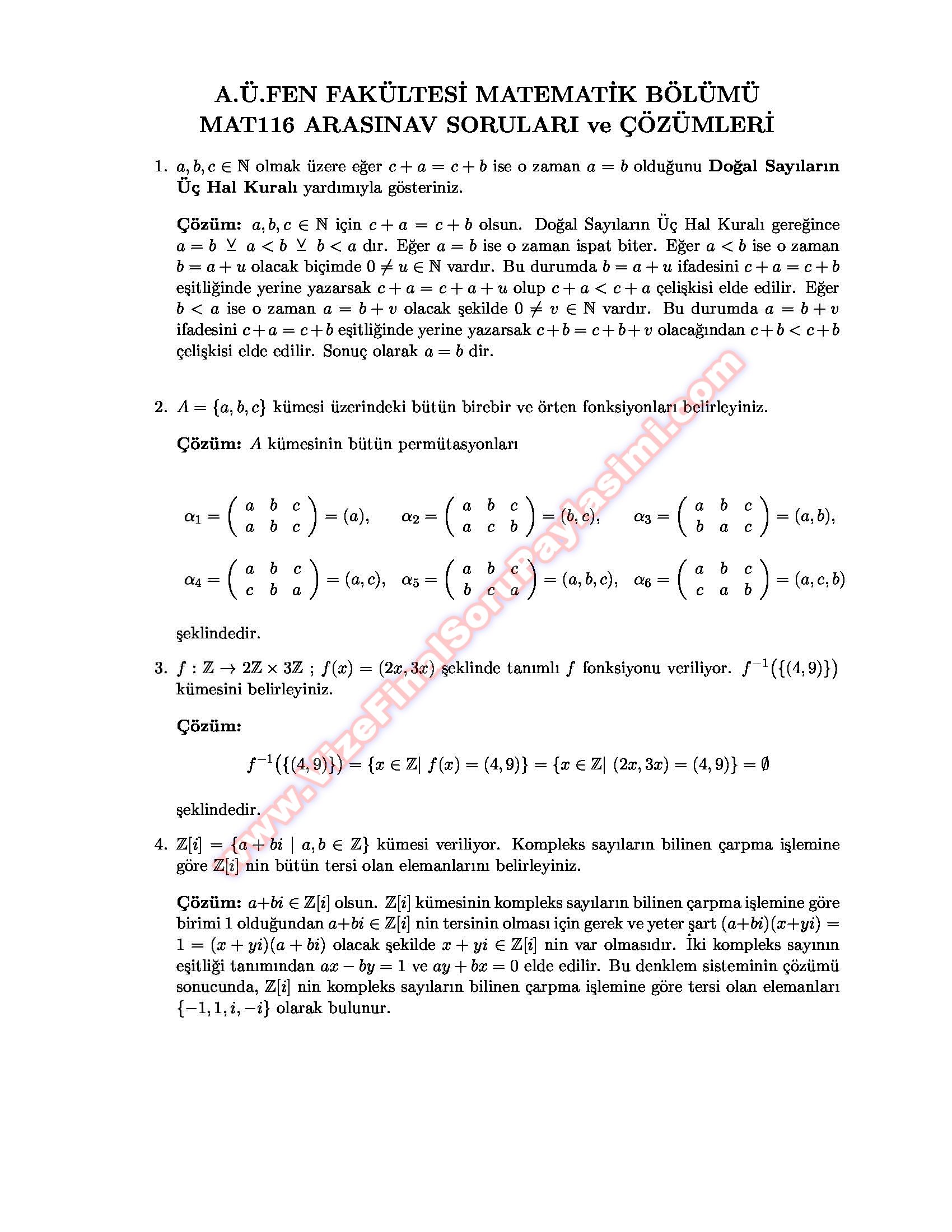 Vize ve Final Soruları / Ankara Üniversitesi / Soyut Matematik 2