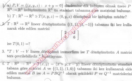Eskişehir Osmangazi Üniversitesi Lineer Cebir Vize Soruları- 2012 18-07-2014, 02:00