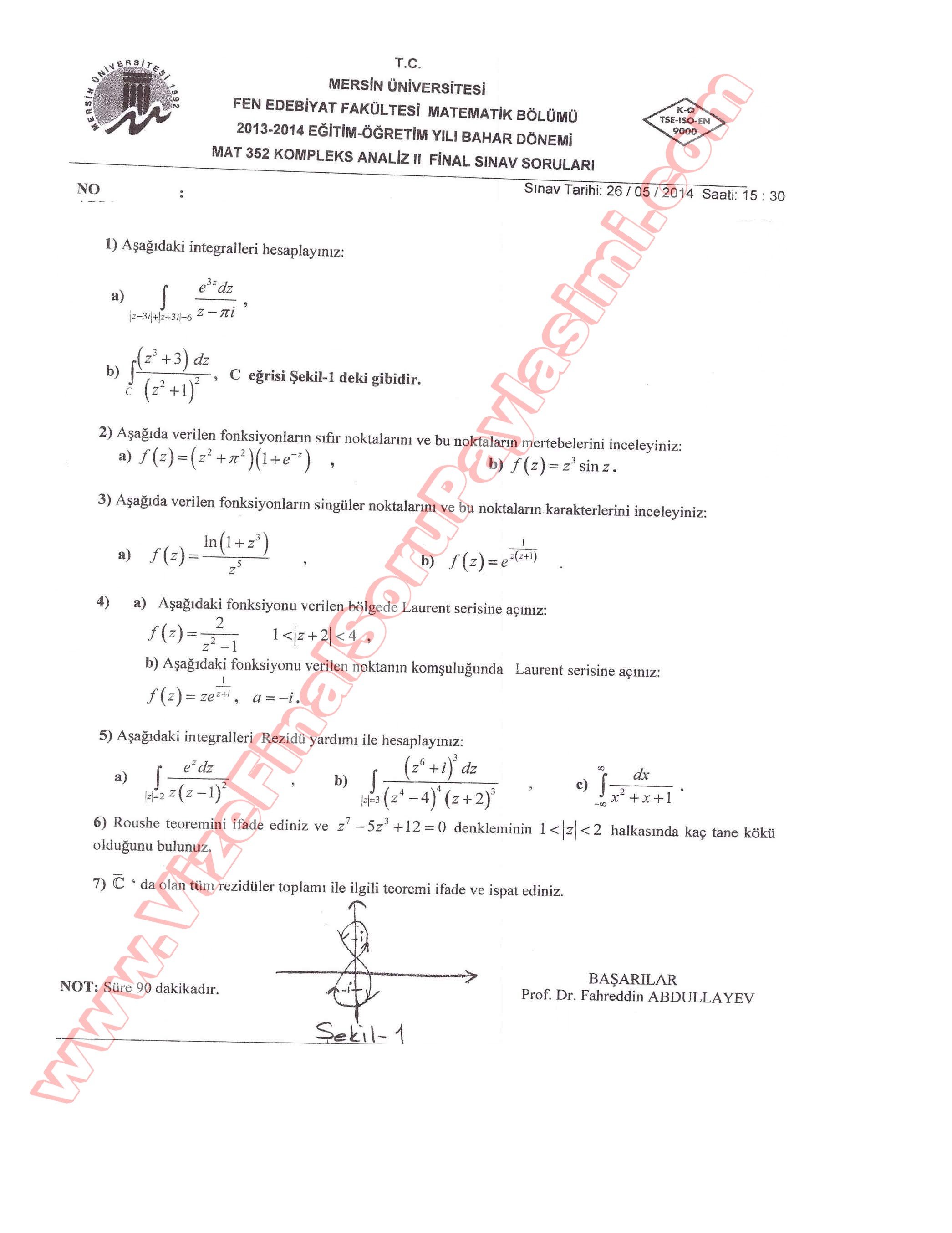 Kompleks Analiz-1 Final Soruları Ve Cevapları - 26.05.2014