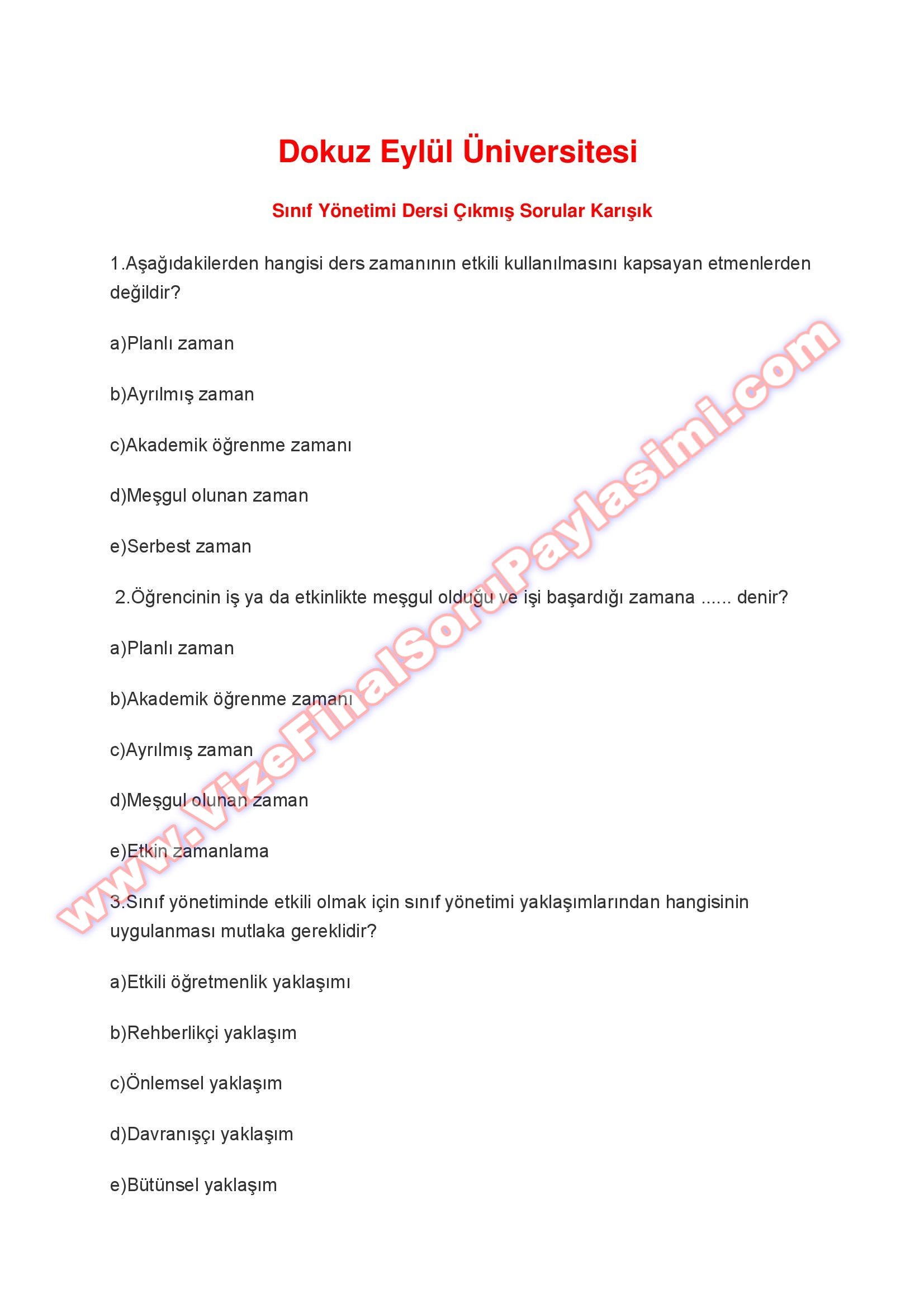 Vize ve Final Soruları / Dokuz Eylül Üniversitesi / Sınıf Yönetimi Dersi