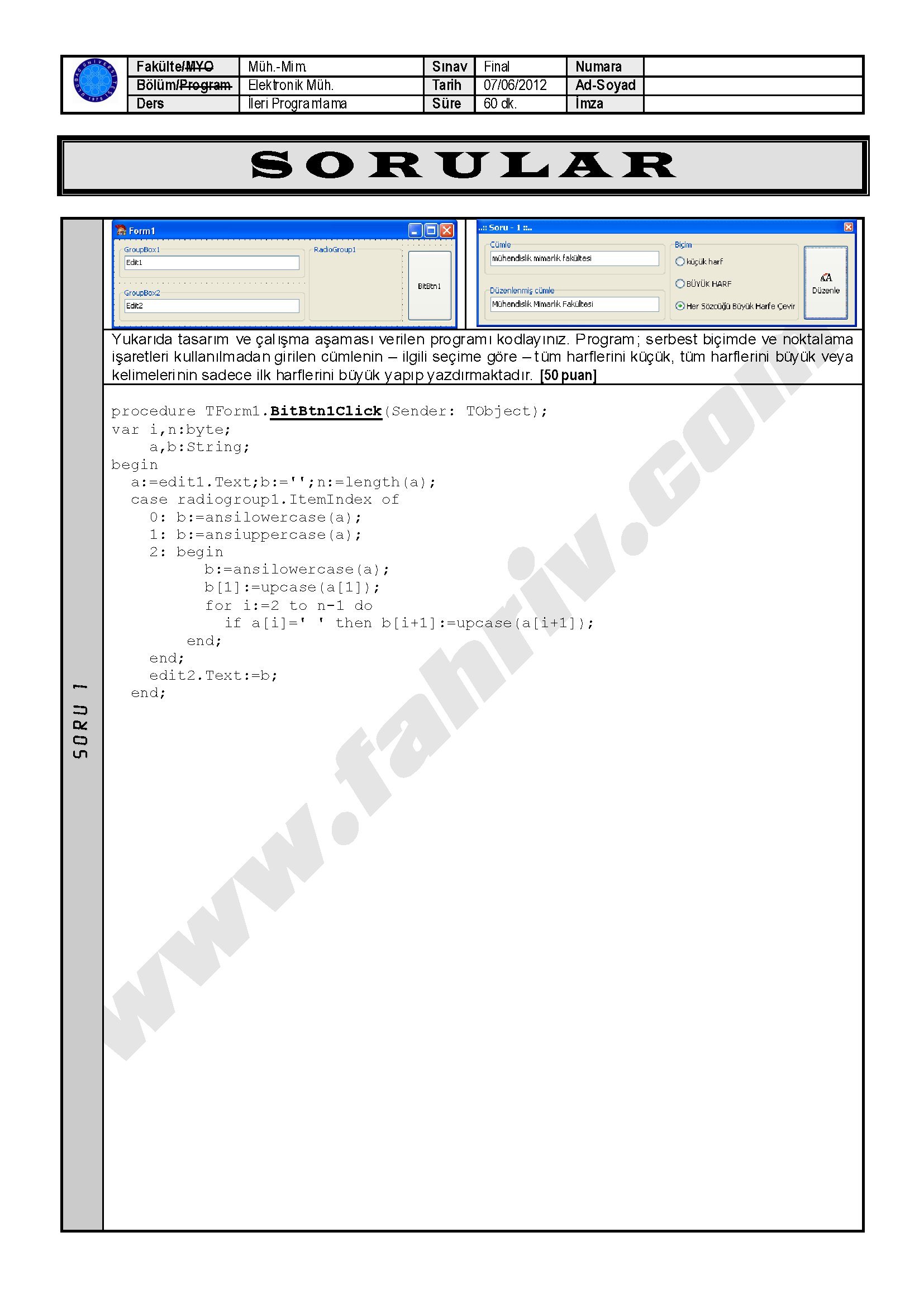 Vize ve Final Soruları / Uludağ Üniversitesi / İleri Programlama Dersi