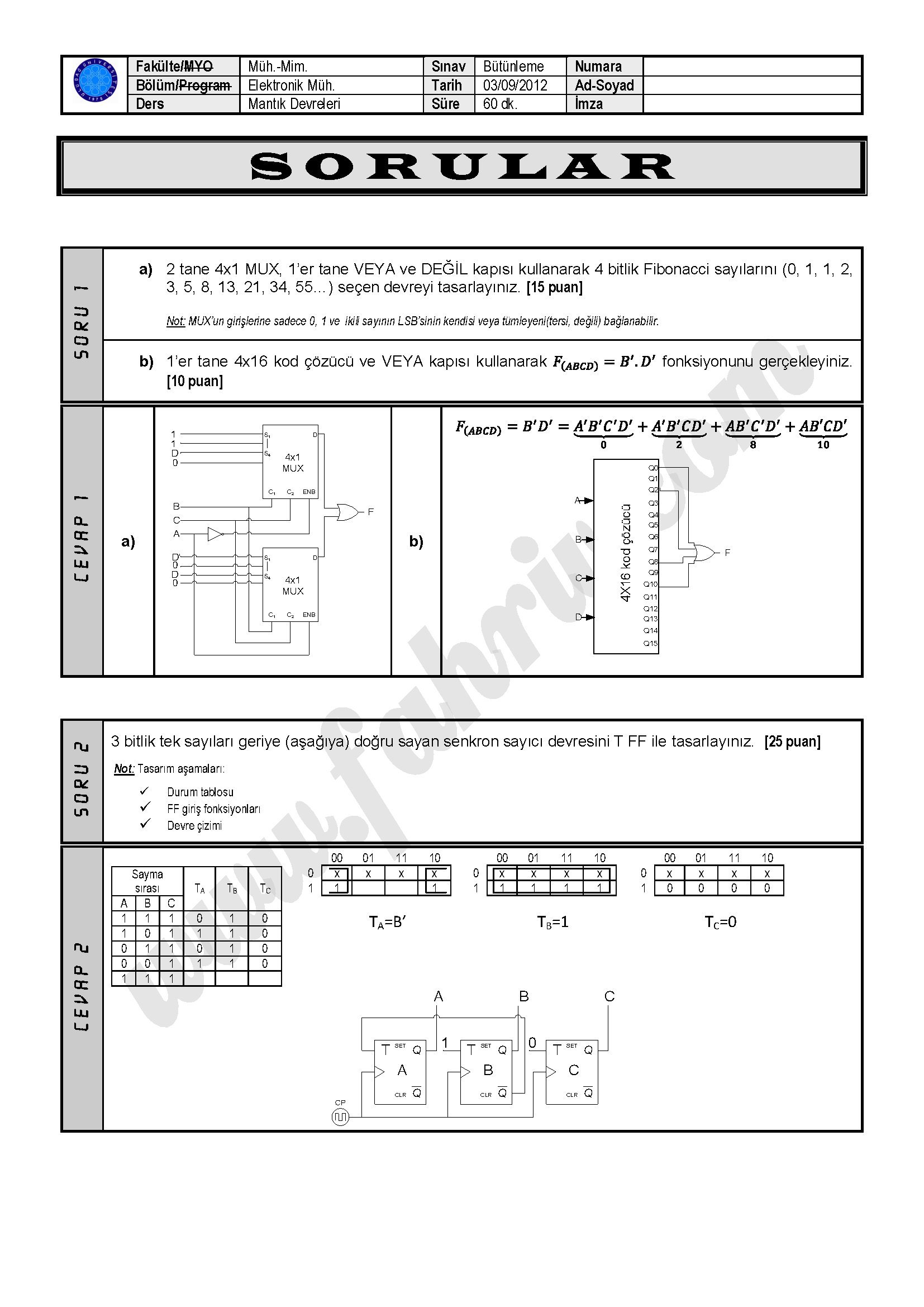 Mantık Devreleri Bütünleme Soruları - 03.09.2012