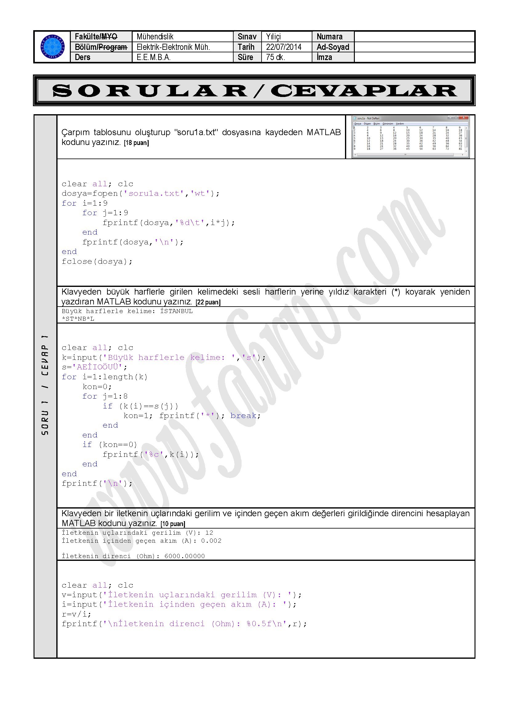 E.E.M. İçin Bilgisayar Araçları Yaz Okulu Vize Sorulari Ve Cevaplari - 2014