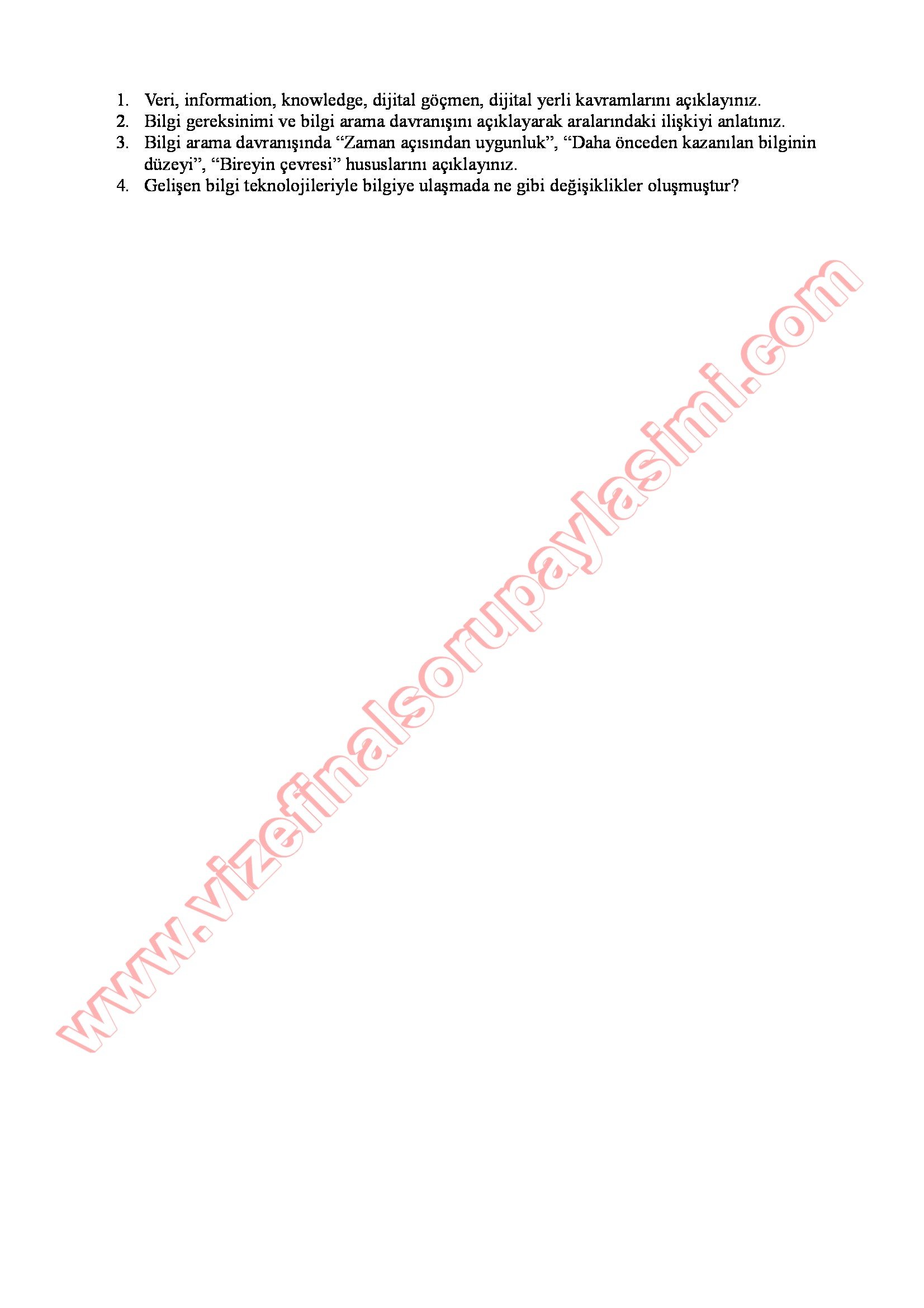 Vize ve Final Soruları / İstanbul Üniversitesi / Bilgi Mimarisi Dersi