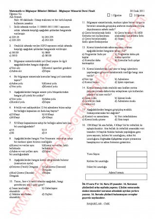 Bilgisayar Mimarisi Final Soruları-2011 29-03-2015, 16:13