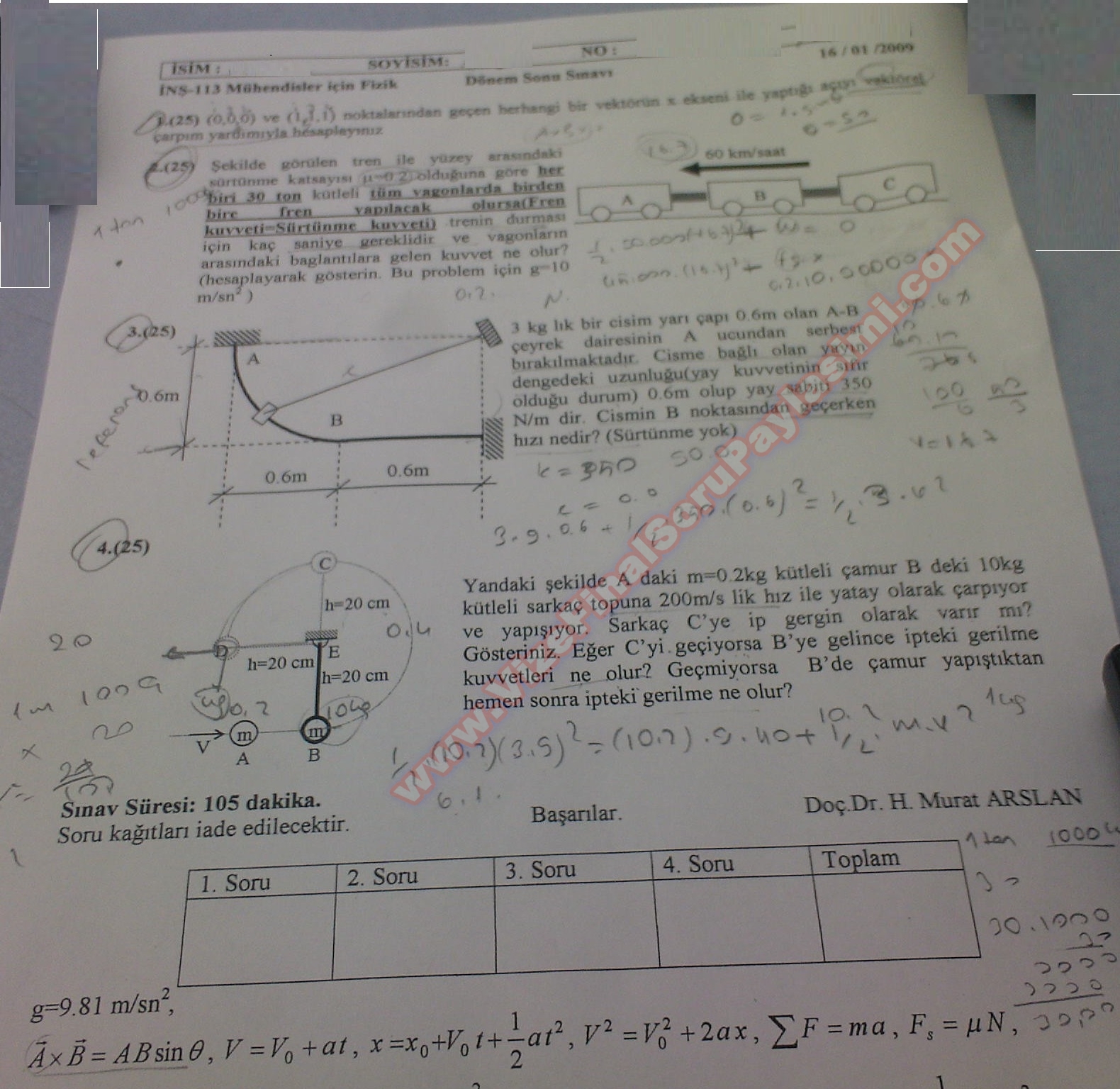Fizik-1 Final Soruları-2009 2-03-2015, 19:29