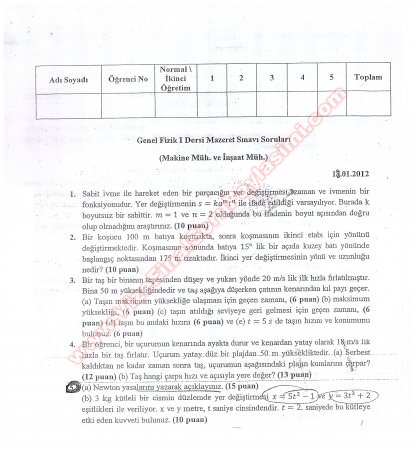 Genel Fizik 1 Mazeret Sınav Soruları 2012 26-03-2015, 05:52