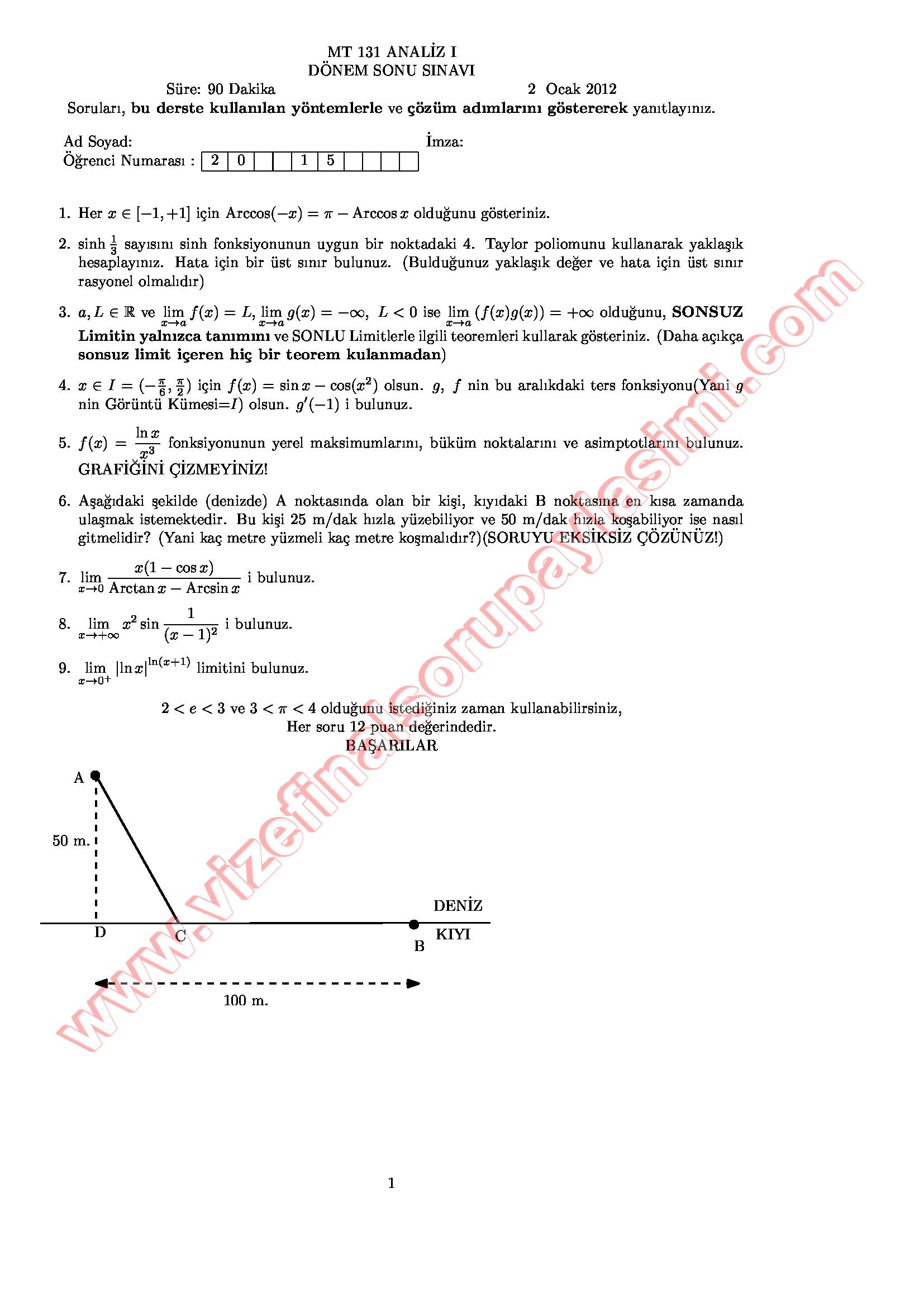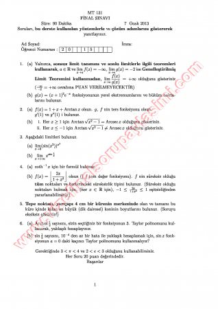Analiz-1 Final Soruları Ve Çözümleri - 02.01.2012
