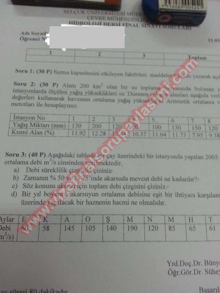 Vize ve Final Soruları / Selçuk Üniversitesi / Hidroloji Dersi