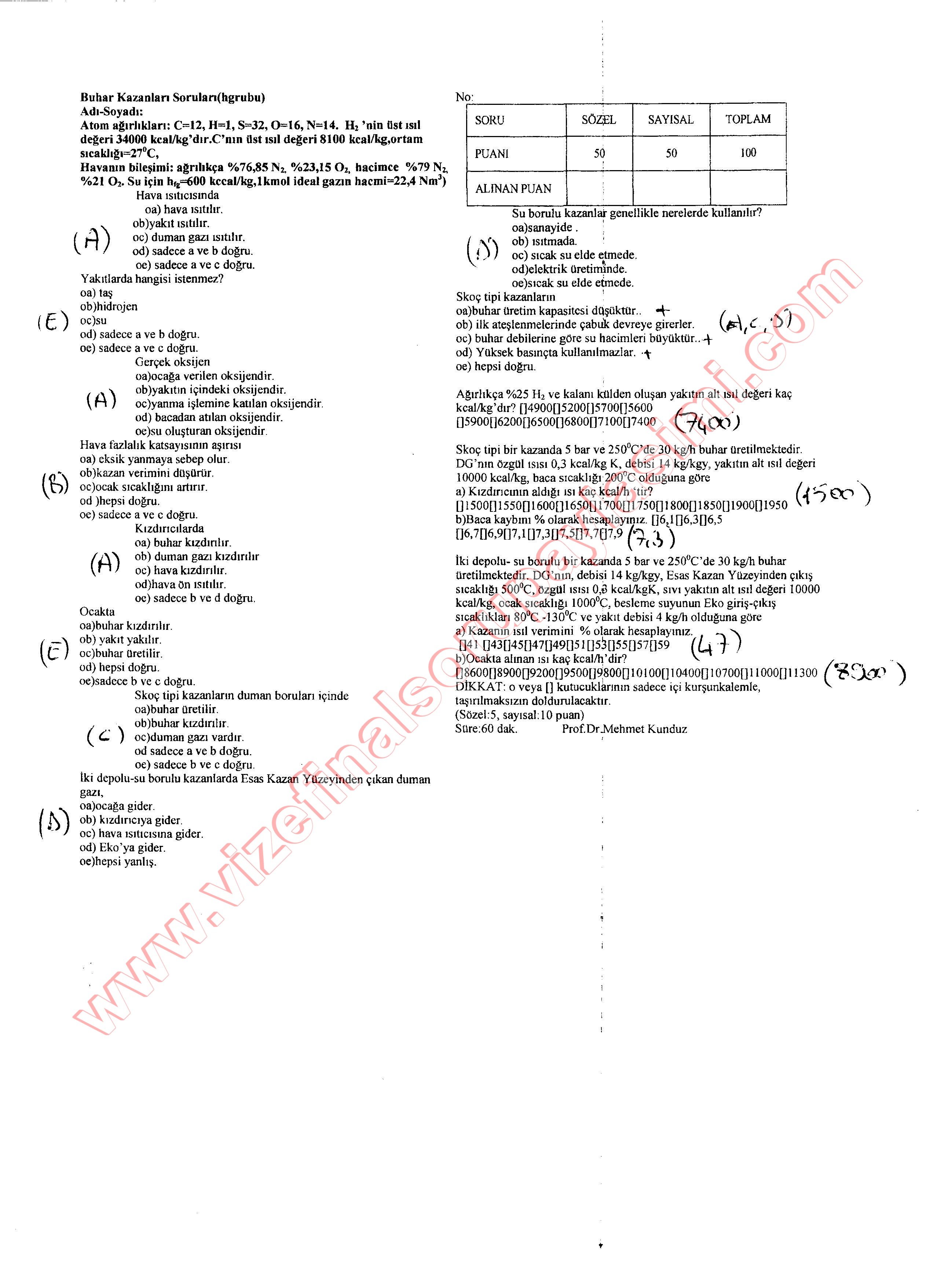 Vize ve Final Soruları / Süleyman Demirel Üniversitesi / Buhar Kazanları Dersi
