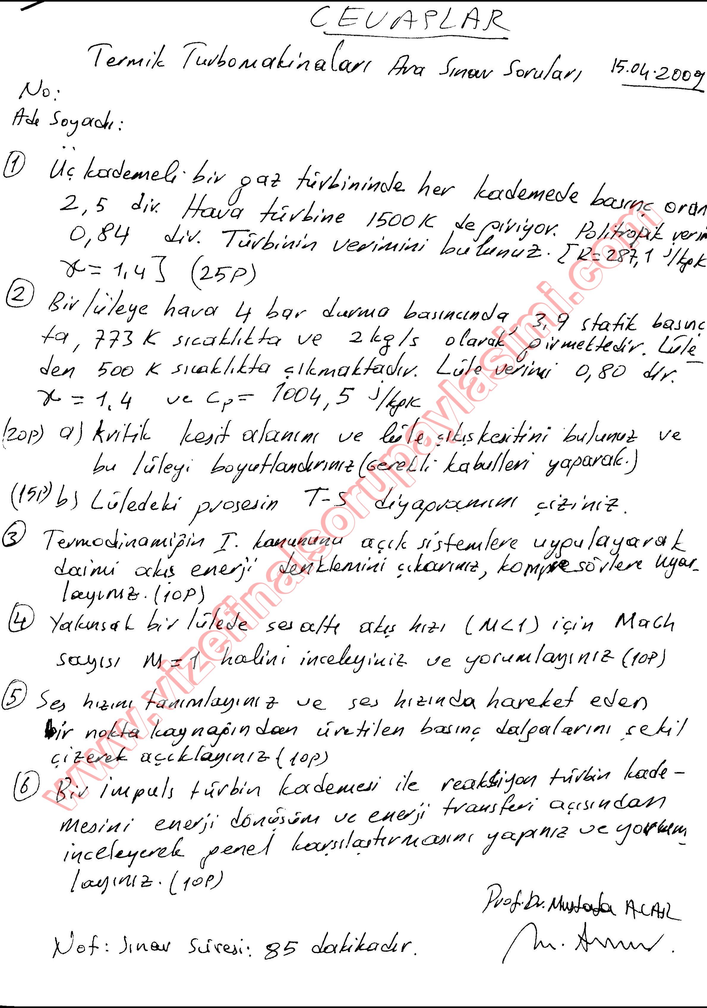 Termik Turbo Makinaları Vize Soruları Ve Cevapları