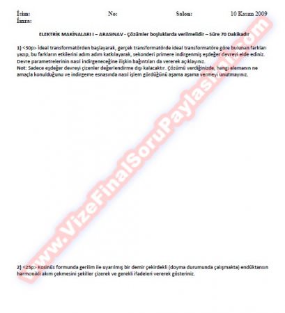 Vize ve Final Soruları / Süleyman Demirel Üniversitesi / Termik Turbo Makinaları