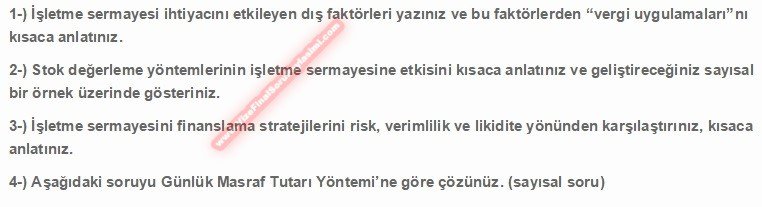 Vize ve Final Soruları / Gazi Üniversitesi / İşletme Sermayesi Dersi