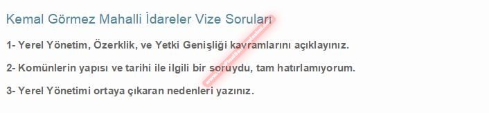 Vize ve Final Soruları / Gazi Üniversitesi / Mahalli İdareler Dersi