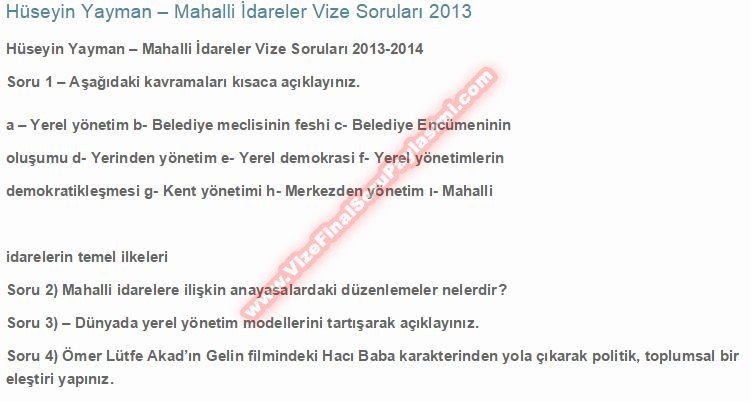 Vize ve Final Soruları / Gazi Üniversitesi / Mahalli İdareler Dersi