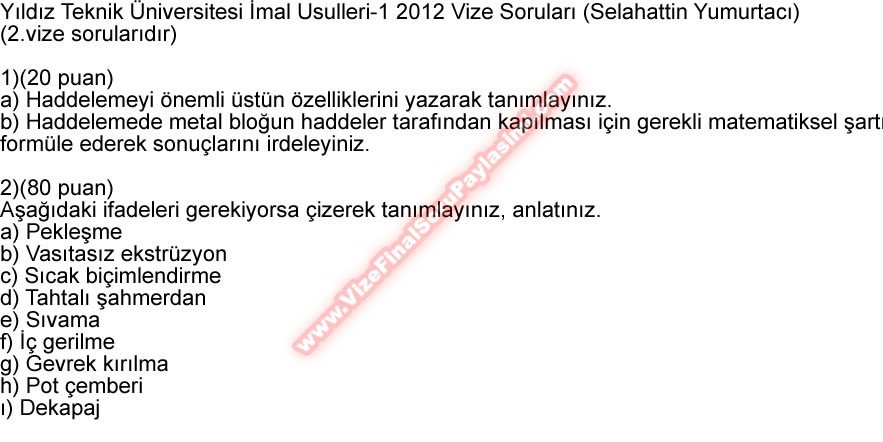 İmal Usulleri Vize Soruları Ve Cevapları 3-04-2015, 07:06