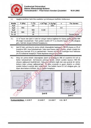 Kategori: Vize ve Final Soruları / Cumhuriyet Üniversitesi / Termodinamik-1