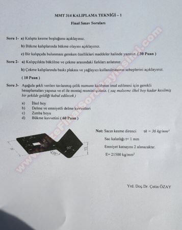 Kalıplama Tekniği-1 Dersi Final Soruları Paylaşan: Phantomix Tarih: 26-07-2014, 02:38 Gösterim: 6 827 Devamı