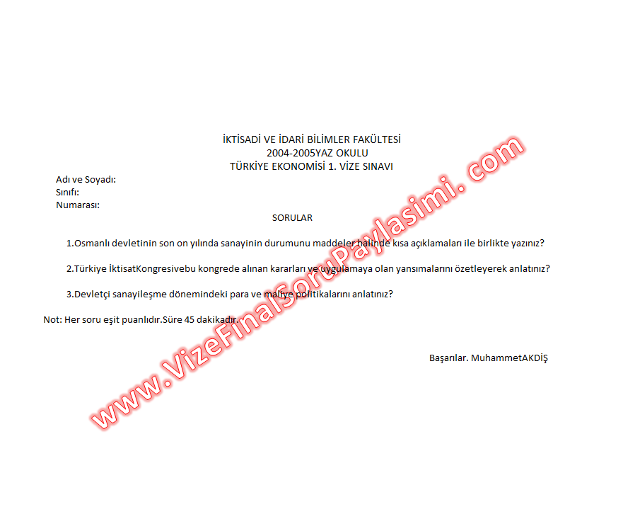 Kategori: Vize ve Final Soruları / Pamukkale Üniversitesi / Türkiye Ekonomisi Dersi