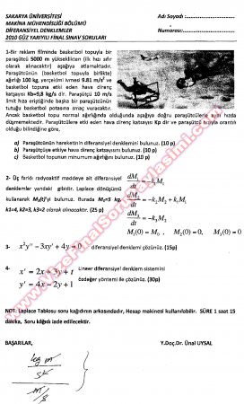 Kategori: Vize ve Final Soruları / Sakarya Üniversitesi / Diferansiyel Denklemler
