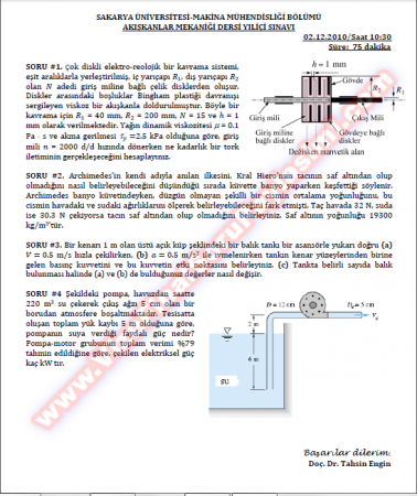 Kategori: Vize ve Final Soruları / Sakarya Üniversitesi / Akışkanlar Mekaniği