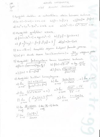 Kategori: Vize ve Final Soruları / Cumhuriyet Üniversitesi / Matematik-1