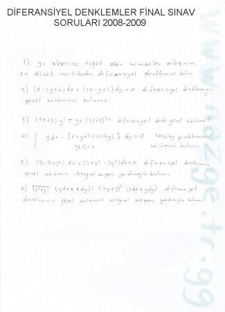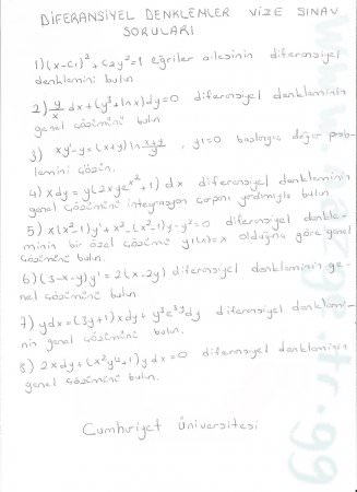Kategori: Vize ve Final Soruları / Cumhuriyet Üniversitesi / Diferansiyel Denklemler