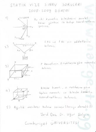 Kategori: Vize ve Final Soruları / Cumhuriyet Üniversitesi / Statik Dersi
