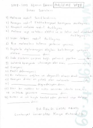 Kategori: Vize ve Final Soruları / Cumhuriyet Üniversitesi / Malzeme Bilgisi Dersi