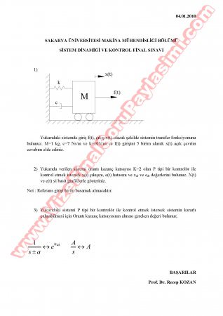 Kategori: Vize ve Final Soruları / Sakarya Üniversitesi / Sistem Dinamiği ve Kontrol Dersi