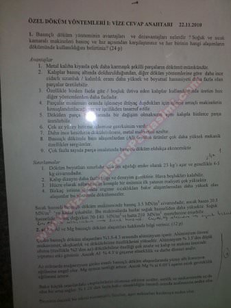 Kategori: Vize ve Final Soruları / Yıldız Teknik Üniversitesi / Özel Döküm Yöntemleri-1