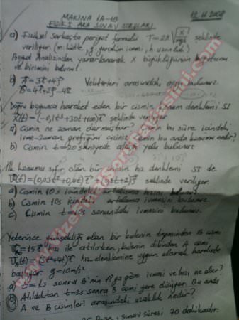 Kategori: Vize ve Final Soruları / Kocaeli Üniversitesi / Fizik-1