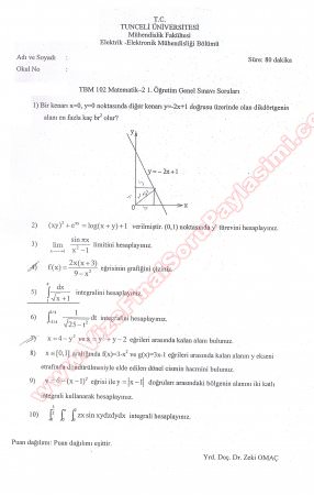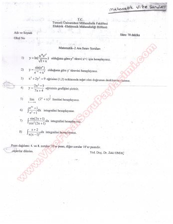 Kategori: Vize ve Final Soruları / Tunceli Üniversitesi / Matematik-2