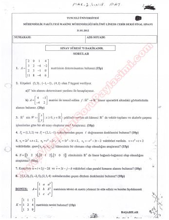 Kategori: Vize ve Final Soruları / Tunceli Üniversitesi / Lineer Cebir Dersi