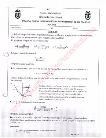Kategori: Vize ve Final Soruları / Tunceli Üniversitesi / Matematik-2