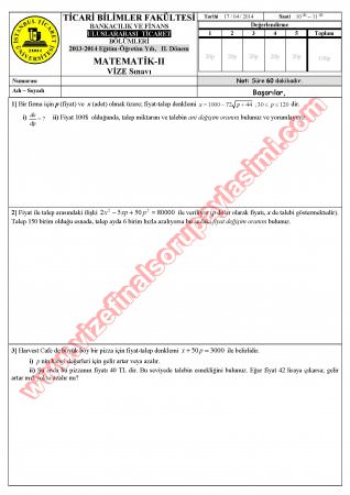 Kategori: Vize ve Final Soruları / İstanbul Ticaret Üniversitesi / Matematik -2