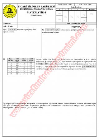 Kategori: Vize ve Final Soruları / İstanbul Ticaret Üniversitesi / Matematik-1
