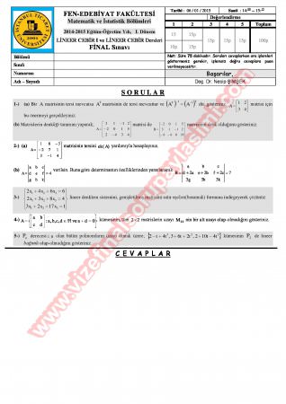 Kategori: Vize ve Final Soruları / İstanbul Ticaret Üniversitesi / Lineer Cebir Dersi