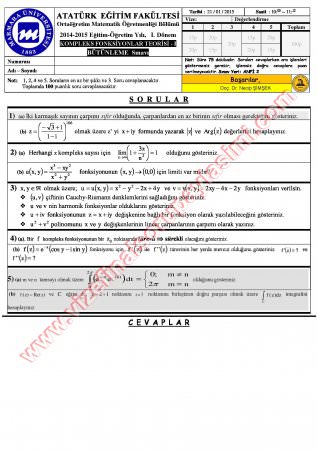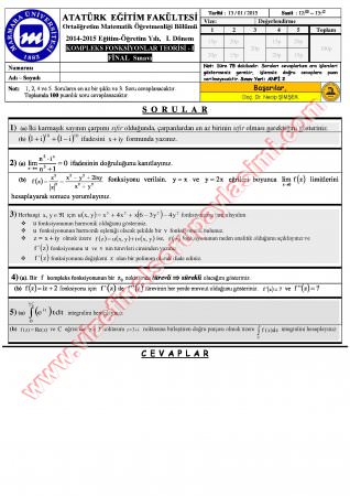 Kategori: Vize ve Final Soruları / Marmara Üniversitesi / Kompleks Analiz -1