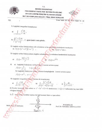 Kategori: Vize ve Final Soruları / Mersin Üniversitesi / Kompleks Analiz -1