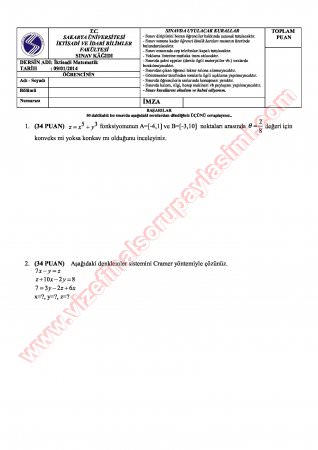 Kategori: Vize ve Final Soruları / Sakarya Üniversitesi / İktisadi Matematik