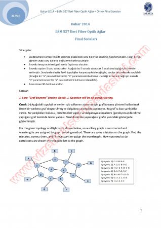 Kategori: Vize ve Final Soruları / Sakarya Üniversitesi / İleri Fiber Optik Ağlar
