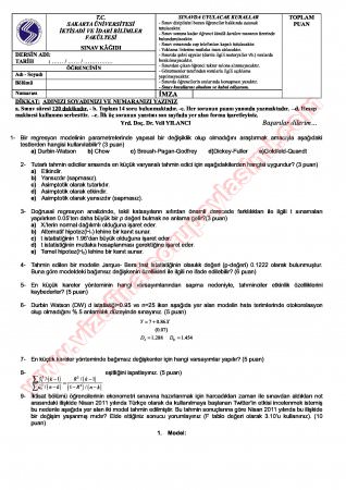 Kategori: Vize ve Final Soruları / Sakarya Üniversitesi / Ekonometri