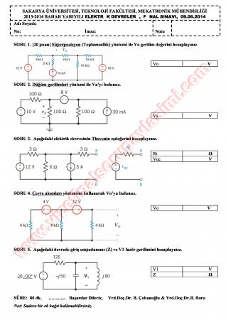 Kategori: Vize ve Final Soruları / Sakarya Üniversitesi / Elektrik Devreleri-2