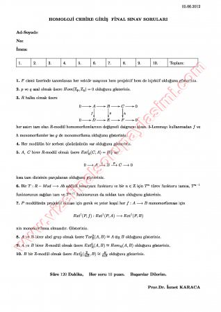 Kategori: Vize ve Final Soruları / Ege Üniversitesi / Homoloji Cebire Giriş