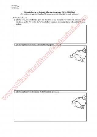 Otomata Teorisi ve Biçimsel Diller Vize Soruları - 2014 Paylaşan: Admin Tarih: 30-04-2015, 20:49 Gösterim: 7 898 Devamı